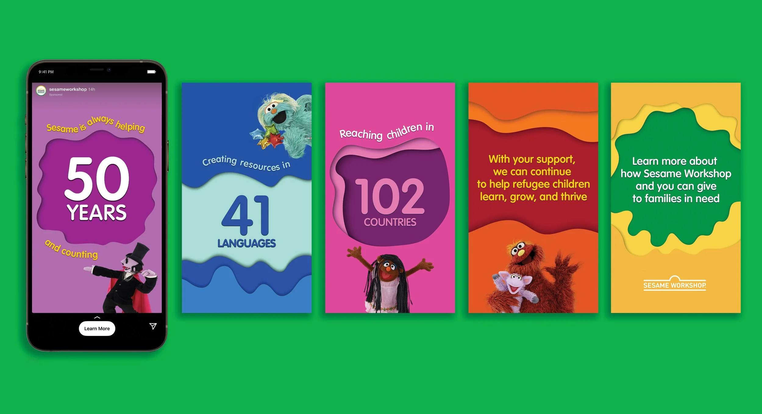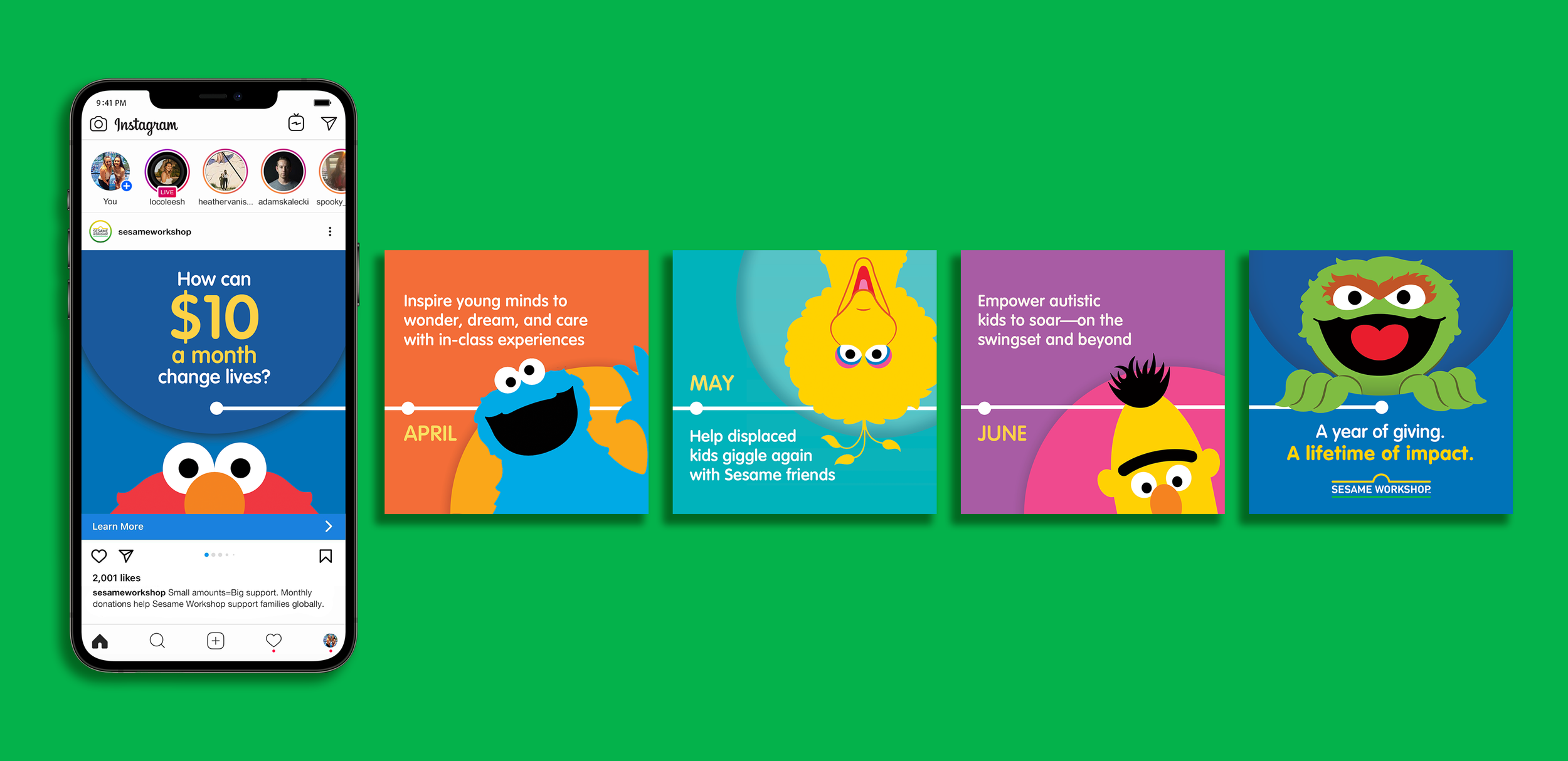 Paid social in both static and animated videos, urging donors to help support the Workshop and their mission while making nods to memorable parts of the show.